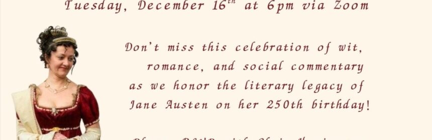 Jane Austen’s 250th Birthday: A Literary Legacy Lives On! Tuesday, December 16 at 6:00 p.m. via Zoom