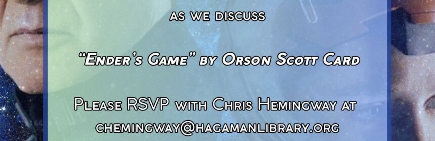 Join Hagaman Library’s Science Fiction Book Club on Tuesday, March 3 at 6:00 p.m. (on Zoom) to discuss Ender’s Game by Orson Scott Card. Ender’s Game (1985) by Orson Scott Card is a seminal military science fiction novel following Andrew “Ender” Wiggin, a brilliant child recruited by the International Fleet to train for a future alien invasion. Sent to orbiting Battle School, […]