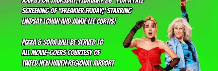 Join us for a screening of Freakier Friday (2025) (PG) starring Jamie Lee Curtis, Lindsay Lohan and Julia Butters. Doors open at 6pm. Pizza and drinks will be served at 6:00 p.m. to all movie-goers courtesy of our gracious sponsor, Tweed New Haven Airport. The film will begin at 6:30 p.m. Registration is required: to RSVP, please send an email to […]