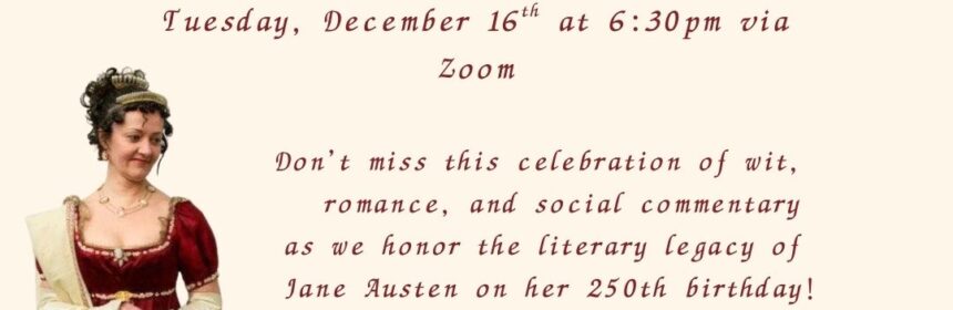 Jane Austen’s 250th Birthday: A Literary Legacy Lives On! Tuesday, December 16 at 6:30 p.m. via Zoom