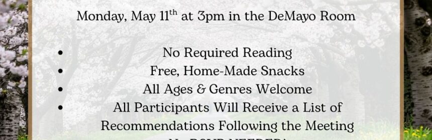 What are you reading this spring? Join us at the library as we discuss our favorite reads, and review and recommend books to each other! You will go home with a brand new booklist! Refreshments will be served. For more information, contact Cynthia at: cgwiazda@hagamanlibrary.org.