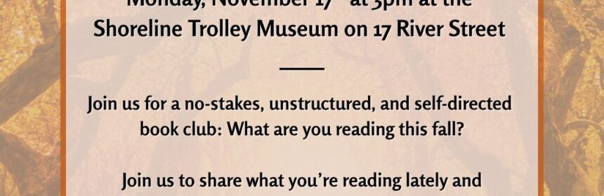 Reader’s Roundtable Discussion: Monday, November 17 at 3:00 p.m. (at The Shoreline Trolley Museum, 17 River St.)