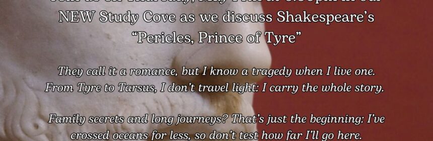 Shakespeare Reading Club: “Pericles, Prince of Tyre” – Thursday, May 14 at 6:30 p.m. (Study Cove)